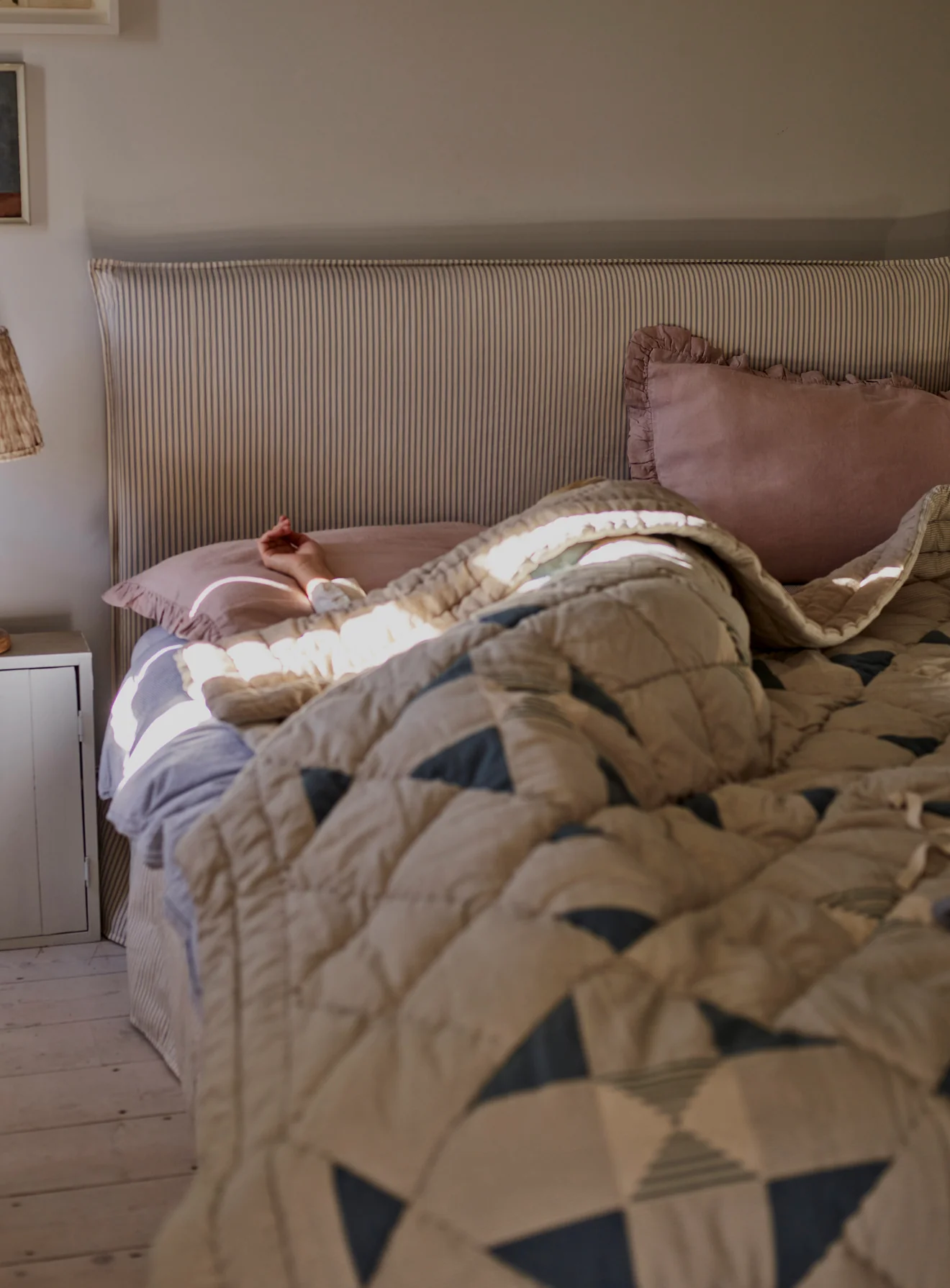 Mila Bed, Grey Ticking Stripe