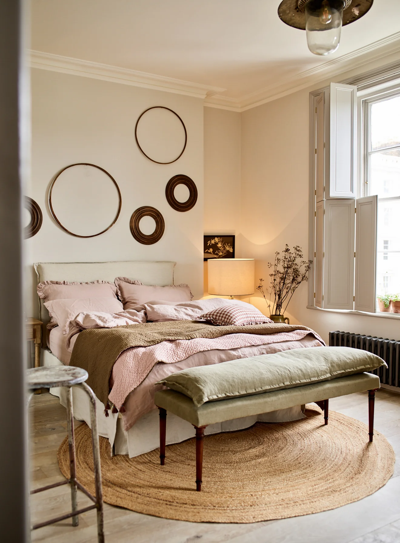 - A relaxed-meets-refined linen bench