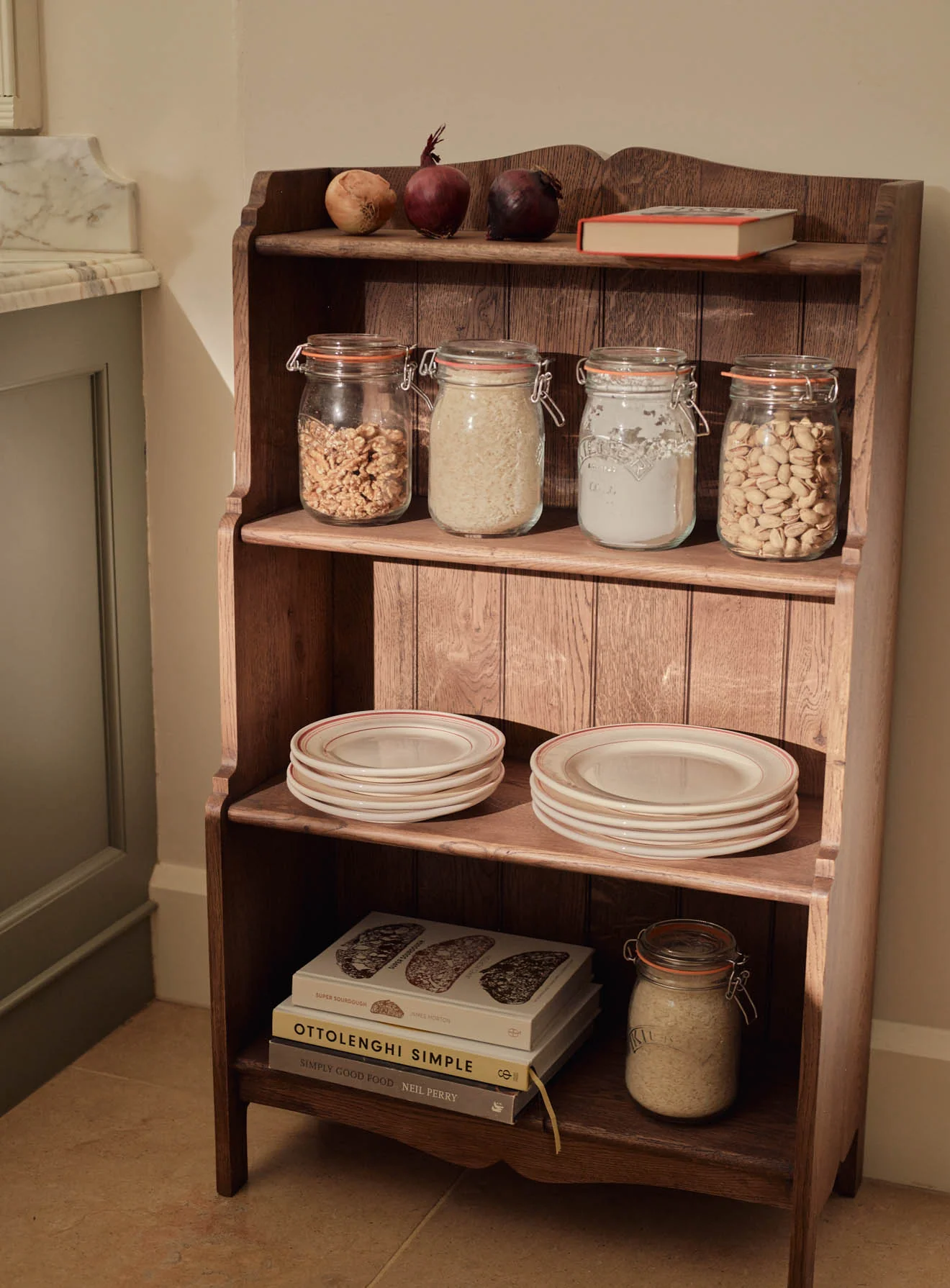 - Designed to hold books, ceramics, glassware, or everyday kitchen essentials