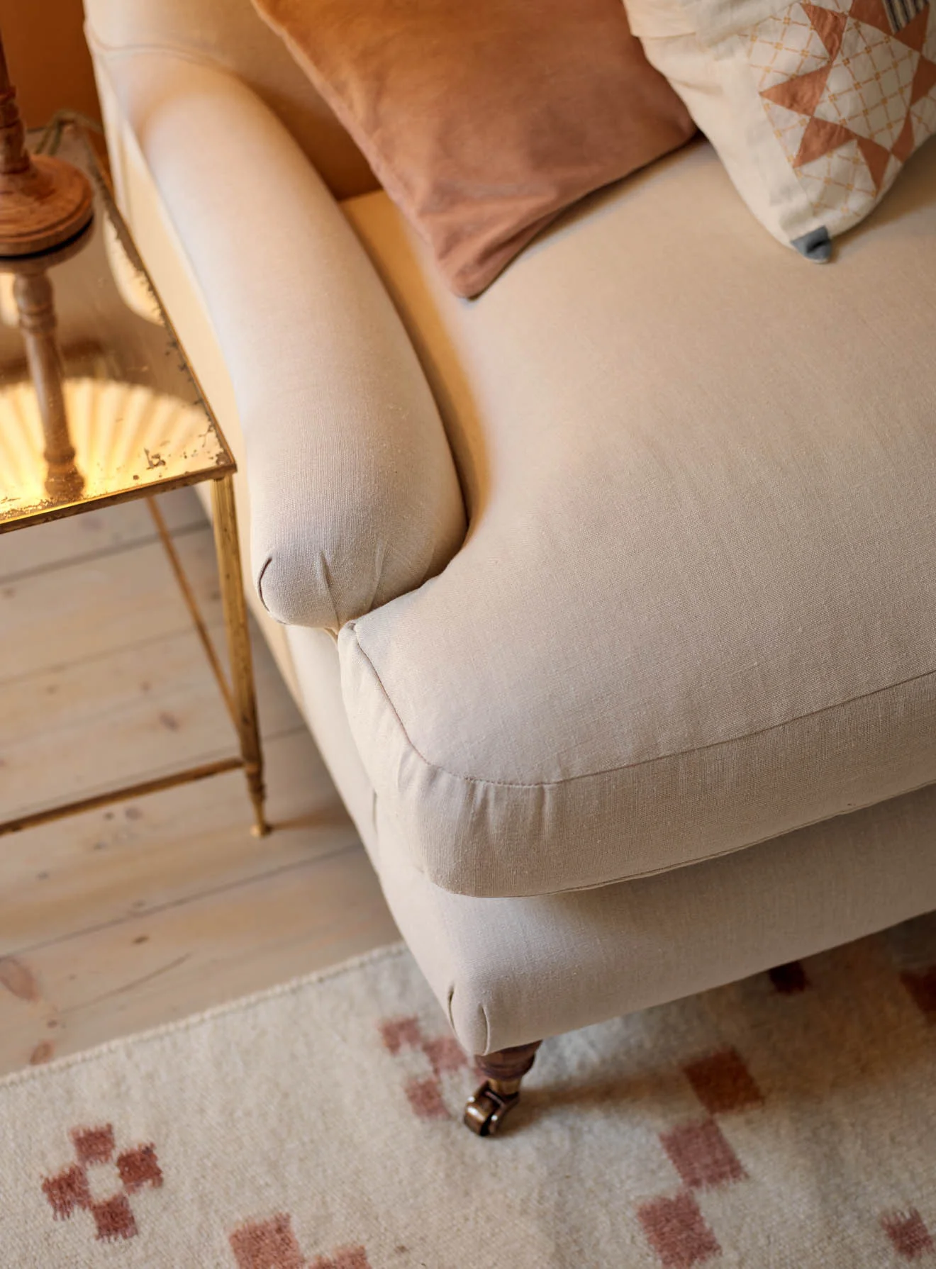- Upholstered in a classic cream-coloured linen that's warm and neutral in tone